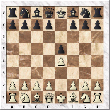 Black replies with 1...e7-e5. I've heard aliens aren't very good at gambits. Why not try the KING'S GAMBIT?