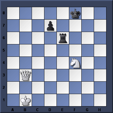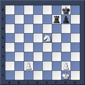 White should move his pawn one square forward and turn it into a knight. ![]() ![]() |