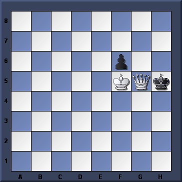 It's CHECKMATE! Black has lost because his King cannot take the White Queen. ![]() ![]() |