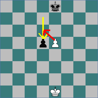 Black has just moved his Pawn TWO SQUARES. Now, White can, if he chooses, CAPTURE THE BLACK PAWN WHILE IT PASSES ITS FIRST SQUARE.