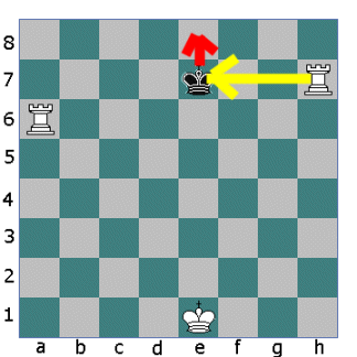 The second Rook takes aim again. This time the King has no choice but to move to the top of the board. He will not be around very much longer!