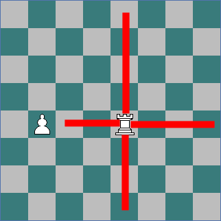 A Rook can be BLOCKED by a friendly piece. Here, the Rook CANNOT move onto or beyond the square occupied by the White Pawn.