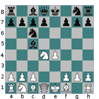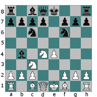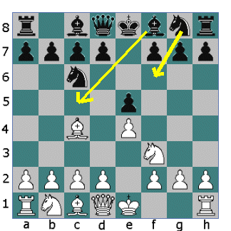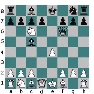 Here it's Black's move. Again you have two moves to choose from. Ng8-f6 Qd8-f6