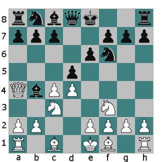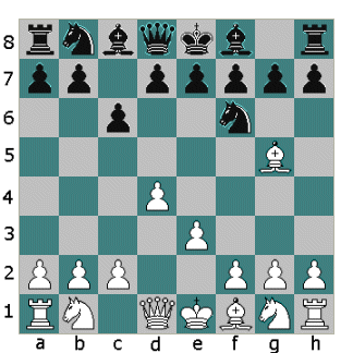 OK. Here's your first task. You're Black. You're in check. What should you play? c7-c6 Nb8-c6 Bc8-d7 Qd8-d7