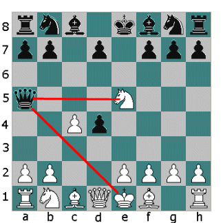 Have a look at this position. How can White play a QUEEN FORK? Remember to enter your move in computer notation.