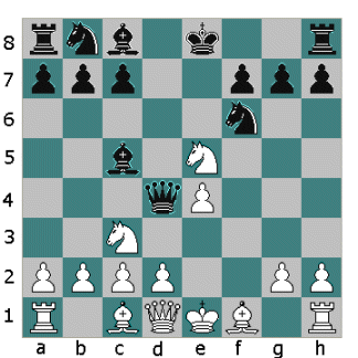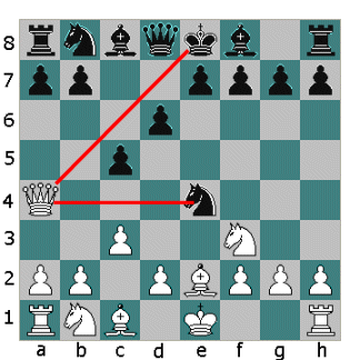 Again you're Black and again you're in CHECK. How are you going to get out of it this time? c7-c6 Nb8-c6 Nb8-d7 Qd8-d7