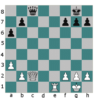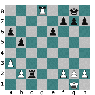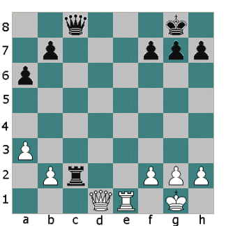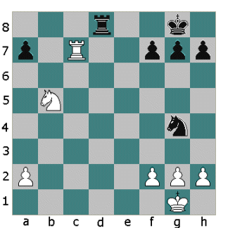 Just take a look at this position. White is winning easily. What would you advise him to do next? Rb7xg7 Rc1-c7 Offer a draw Resign