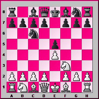 In this position, both sides have moved a Knight. White's move is written Ng1-f3 and Black's move is Nb8-c6.