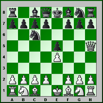 I hope you typed in 'Qh5' (Qd1-h5). In our first example, Black played Nb8-c6. What was White's third move?