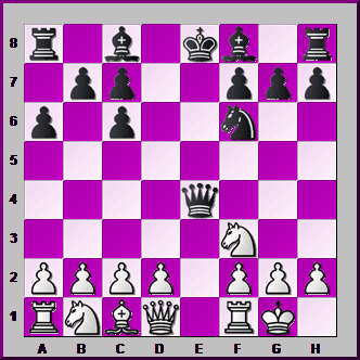 Just to be different, this time you're BLACK. The White Bishop on e2 is PINNED by the Black Queen. How can you use this to deliver CHECKMATE with your Knight?![]()