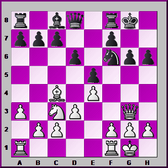 This position's a bit harder. White's Bishop on c4 is PINNING the Black Pawn on f7. How can White use this PIN to win a vital Pawn with his Queen?![]()