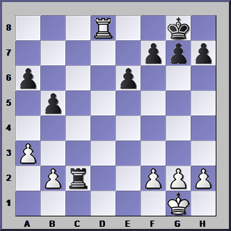 White moved his Rook on c1 (the goalie!) up the board. And Black's Rook came down the board to deliver CHECKMATE in two moves. Oh Dear!! ![]() |