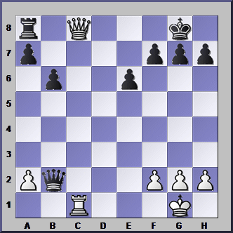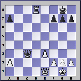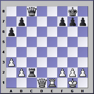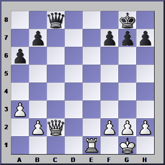 Suppose White captured the Black Queen, giving this position. What should Black play now? ![]() ![]() ![]() ![]() ![]() ![]() |