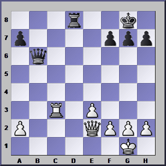Now what happens if White plays the sneaky move Qe2-d3? Would it be a good idea for Black to take the Queen with his Rook? ![]() ![]() ![]() ![]() |
