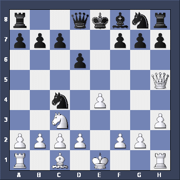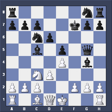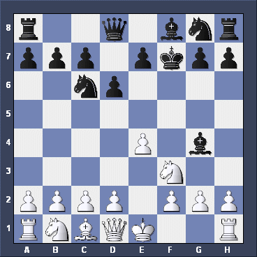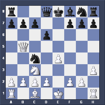 And here's the position after the Queen CHECK. This time it's a QUEEN FORK! After White gets out of check Black plays Qb6xb5, with an extra pawn. And White can no longer castle! ![]() |