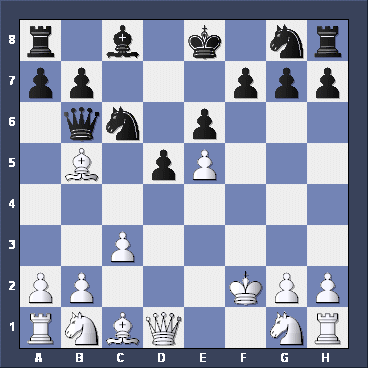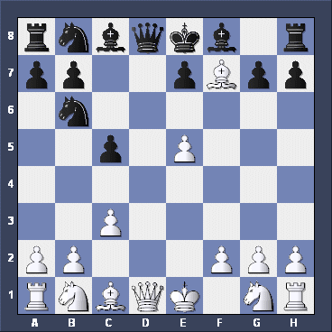Black has nothing better than to take the Bishop, giving this position. Do you see what White can play now? ![]() ![]() ![]() ![]() ![]() ![]() |