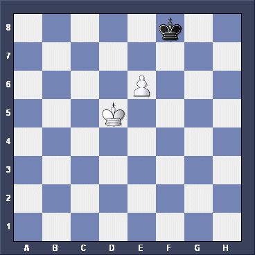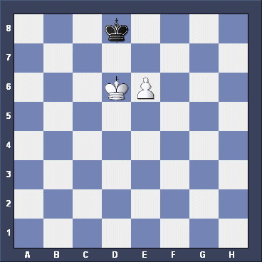 Yes, you're right again. Black MUST play Ke8-f7, giving the position on your left. OK tell me this - what should White do here? ![]() ![]() ![]() ![]() ![]() ![]() |