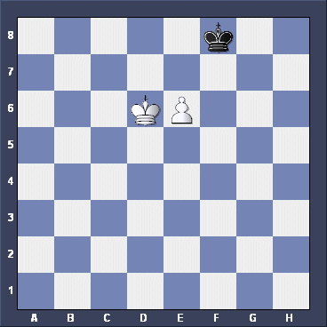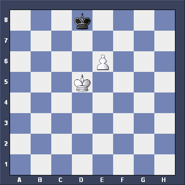 Now let's suppose it's Black's move and he plays Ke8-d8. You should know by now what White should do next. ![]() ![]() ![]() ![]() ![]() ![]() |