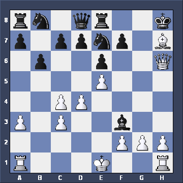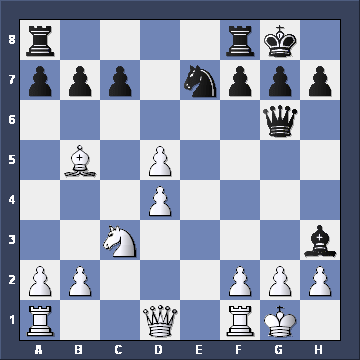 Splat!! A right uppercut smack between the eyes leaves Black up against the ropes. Black has only one move: Kg8xh7. Just one more punch will knock him out - what is it? ![]() ![]() ![]() ![]() ![]() ![]() |