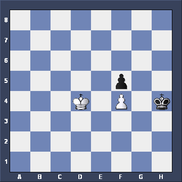 In this position White has TWO moves that draw - everything else loses. Remembering what you've just seen, can you find one of the DRAWING moves? ![]() ![]() ![]() ![]() ![]() ![]() |