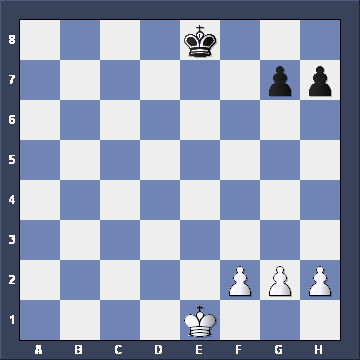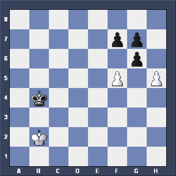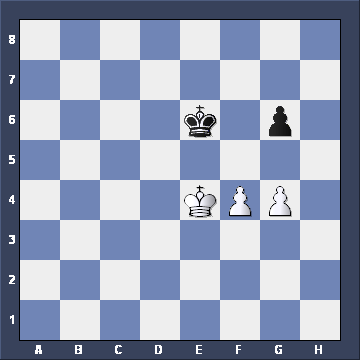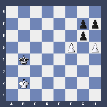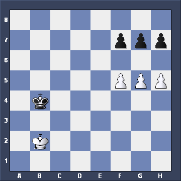 It was easy that time, wasn't it? The same thing again, but on the other side. This time White forces home a Pawn by playing f5-f6 first, and, if Black takes, then h5-h6. ![]() |