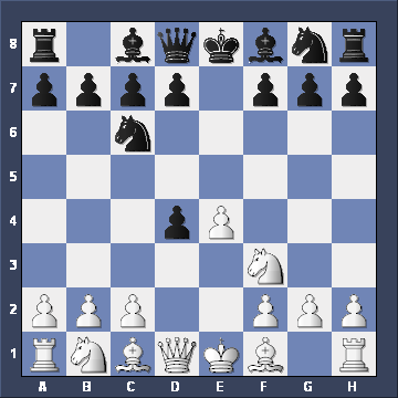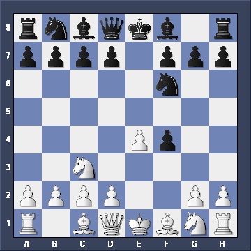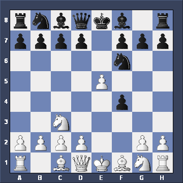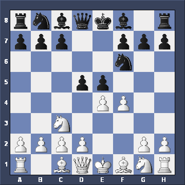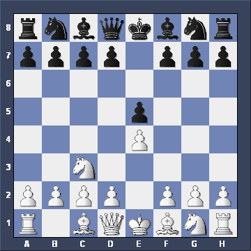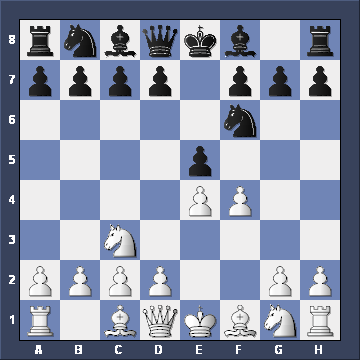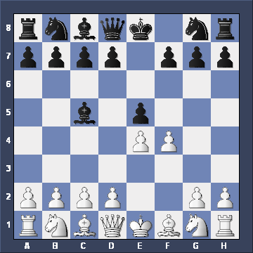 Returning to the position after White's 3rd move, c2-c3, rather than taking the pawns he can strike back in the center at once. Can you see how? (There was a clue earlier!)![]() ![]() ![]() ![]() ![]() ![]() |
