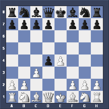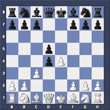 Another 2nd move for Black is d7-d5 (remember that one?), called the FALKBEER COUNTER-GAMBIT. Tell me kiddo, which pawn should White take now? ![]() ![]() ![]() ![]() ![]() ![]() |
