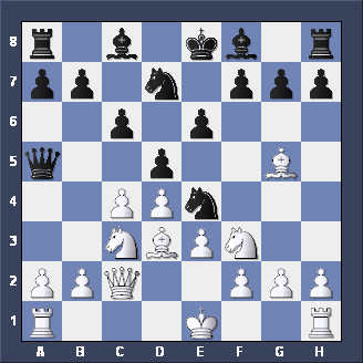 After the moves c4xd5 (which is fine) e6xd5 Nc3xd5 we reach this position. You have to look a couple of moves ahead to work out what Black should play here. ![]() ![]() ![]() ![]() ![]() ![]() |