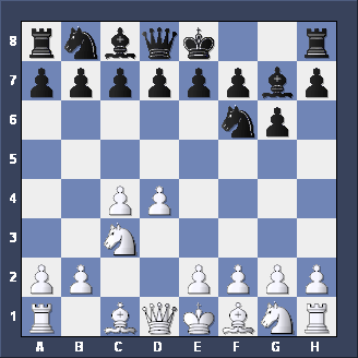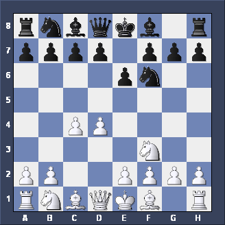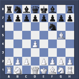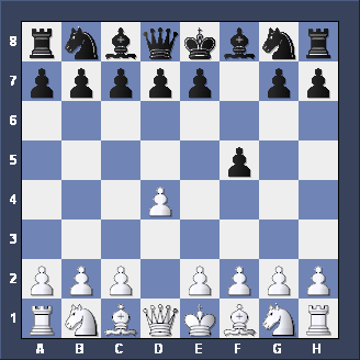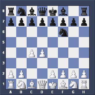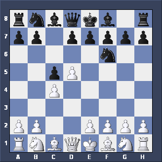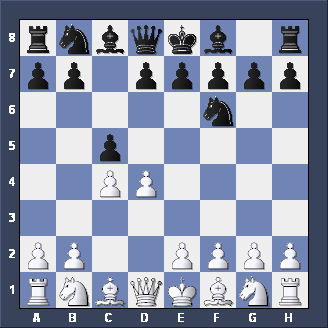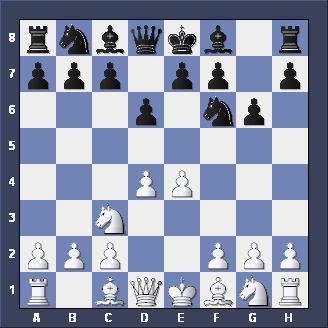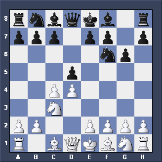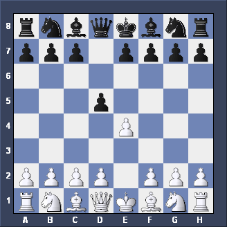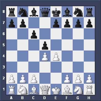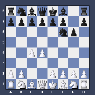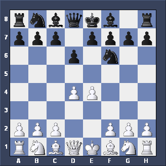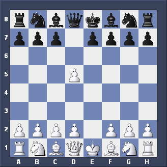 Briefly, two other moves for Black after 1. d2-d4 d7-d5 2. c2-c4. Firstly, Nb8-c6 is the CHIGORIN DEFENSE to the Queen's Gambit - tricky but not easy to play. Secondly, e7-e5, planning to meet d4xe5 with d5-d4 (gaining space and taking c3 away from the White Knight) is the ALBIN COUNTER-GAMBIT - well worth playing if you like GAMBITS.