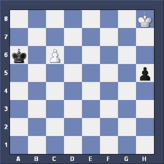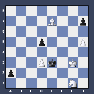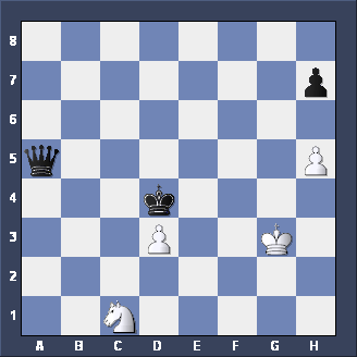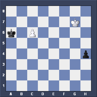The White King moves down the diagonal to g7, and Black pushes his pawn to h4? Now what?