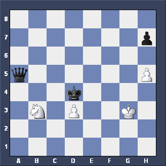 This looks a bit like the last one - we start with the same pieces on the board, and again White seems to have a problem with the Black a-pawn.