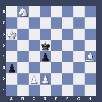 Here's the first one. It's White to play and draw. This was composed by Richard Réti (the man who gave his name to 1. Ng1-f3) in 1921.