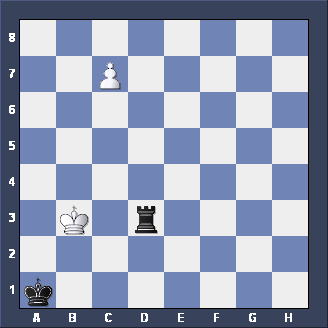 He thought the position was a draw because of Black's clever Rd3-d4 move. But a Spanish priest called Saavedra was watching and (although he wasn't a strong player) noticed that White could win by promoting to a Rook instead.