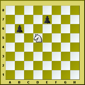 Yes, you're right. If you move your KNIGHT to d5 you'll FORK both the black pawns. If Black moves the pawn on b6 you'll kill the pawn on e7. And if he moves the pawn on e7 you'll kill the pawn on b6. ![]() |