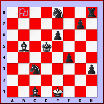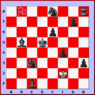 The WHITE KING has to reach the flag on the b8 square in ten moves, without stepping on a mine and getting blown up.