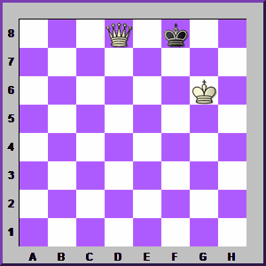 This is also CHECKMATE. The White Queen stops the Black King going to e7. And the White King stops the Black King going to f7 or g7.