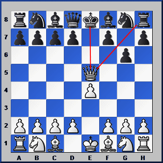 Here's another example. The black Queen FORKS the white King and the Bishop on g5.
