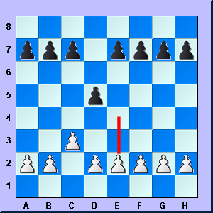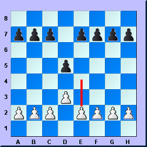 In this position, it would be a mistake to move from e2 to e4 because the enemy soldier on d5 would be able to kill you.
