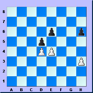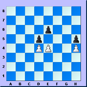 In this CAPTURE THE FLAG position you're the white pawn on e4. You have a choice: kill the evil alien on d5 or run away to e5. Which are you going to do? If you get it wrong you get whacked and your army loses the battle. |