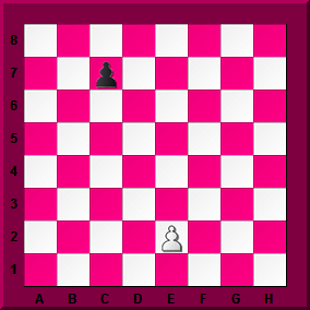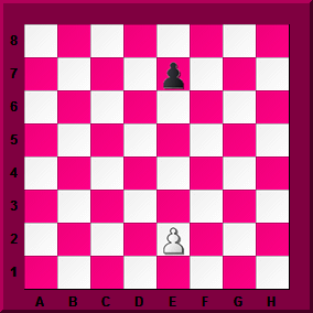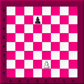 This time it's a bit different. Both pawns start on the same file. Try it out with both colours and see what happens this time. Come back here when you're ready and tell me who you think should win, White or Black. |